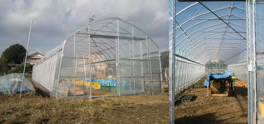 こんにちは。1ヶ月ぶりの更新です。立冬を過ぎて、寒い毎日が続き、気候は完全に冬になってまいりました。 さて、前回のブログでもご紹介しましたが、建設中のビニールハウスが遂に完成致しました(゚∀゚)! 旧ハウスの約2倍の面積を占め、今後はこのハウス内で、育苗用の棚を新設し、これまでの倍以上の苗類の栽培ができるようになります!