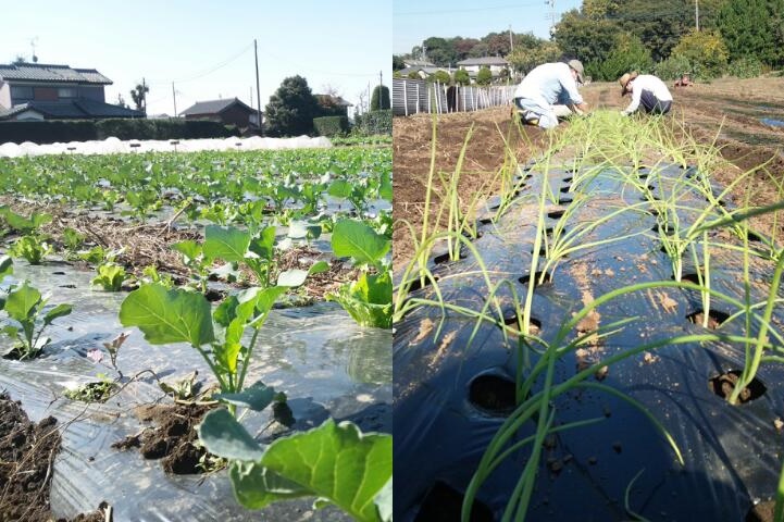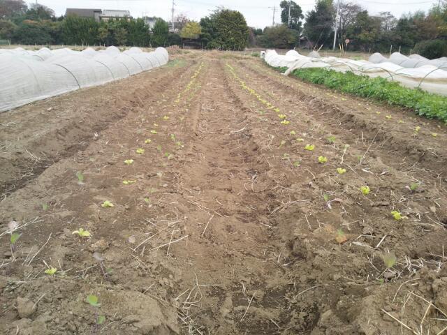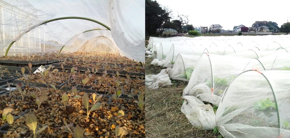 今回も色々な野菜の栽培作業を行いました。今月は白菜やキャベツが種まき後についに発芽をし、その定植作業を中心に行いました。そして以前ご紹介しました、花の種も遂に目をだし、来年も農場内の「花で囲もう」計画の準備も着々と進んでいます♪ちなみに今シーズンの第1弾の花は、昨冬朝市などでお客様より大好評をいただきました、パンジーを栽培中です。また気温も本格的に冷え込み、今年も寒さ対策のため、ビニールトンネルや寒冷紗の出番が到来(笑)。現在農場内では、多くの野菜がこれらの備品で温度管理がされています