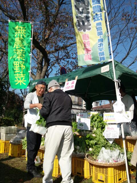 そしてこちら、3ヶ月ぶりの出展になります、「うんがいい!朝市」の様子です!今回はカブやほうれん草などの秋冬野菜が(朝市では)初陳列となり、前回の朝市陳列の夏野菜から大幅に変わり、そのラインナップから多くのお客さまにお立ち寄りいただきました!農場直売所に同じ、やはり朝市でも、特にカブは爆発的な人気やご好評をいただき、早い段階で完売御礼となりました!!水菜や春菊、ラディッシュもそれに負けない勢いです!