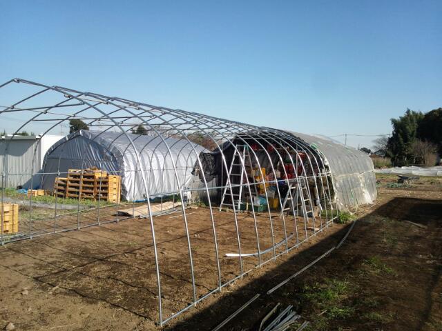 さて、今月および今年最後の重大ミッションとして、先月新設のビニールハウス・・・ではなく既存のビニールハウスも、面積を拡大し、リニューアル工事を行いました!